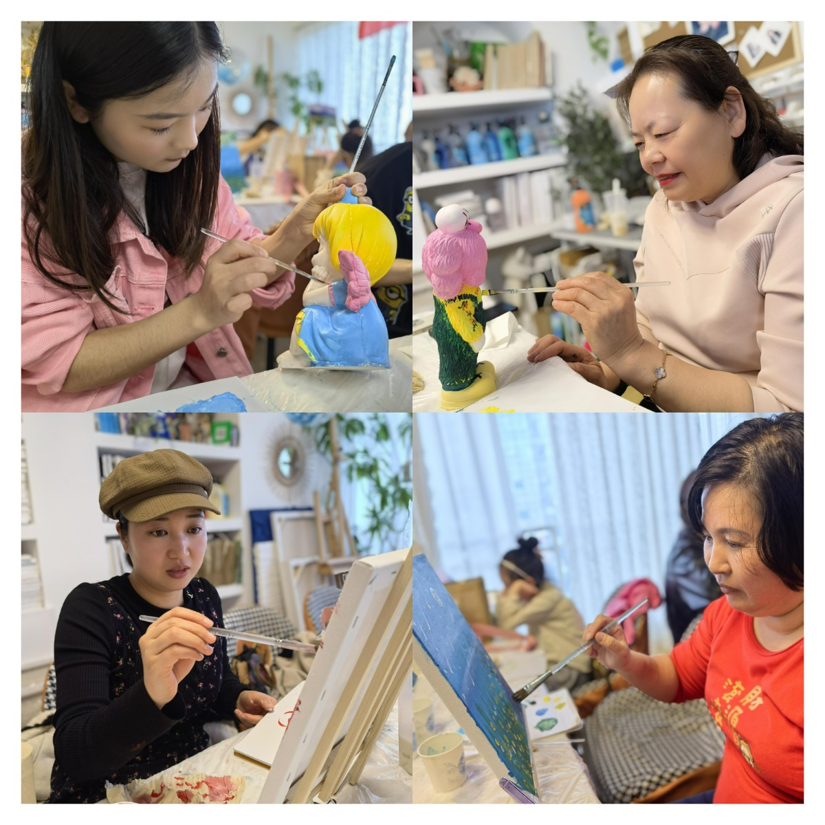 經(jīng)過兩個多小時的創(chuàng)作,一幅幅色彩絢麗的圖畫躍然紙上,大家都開心地拿著自己的作品進(jìn)行合影留念,成就感十足。